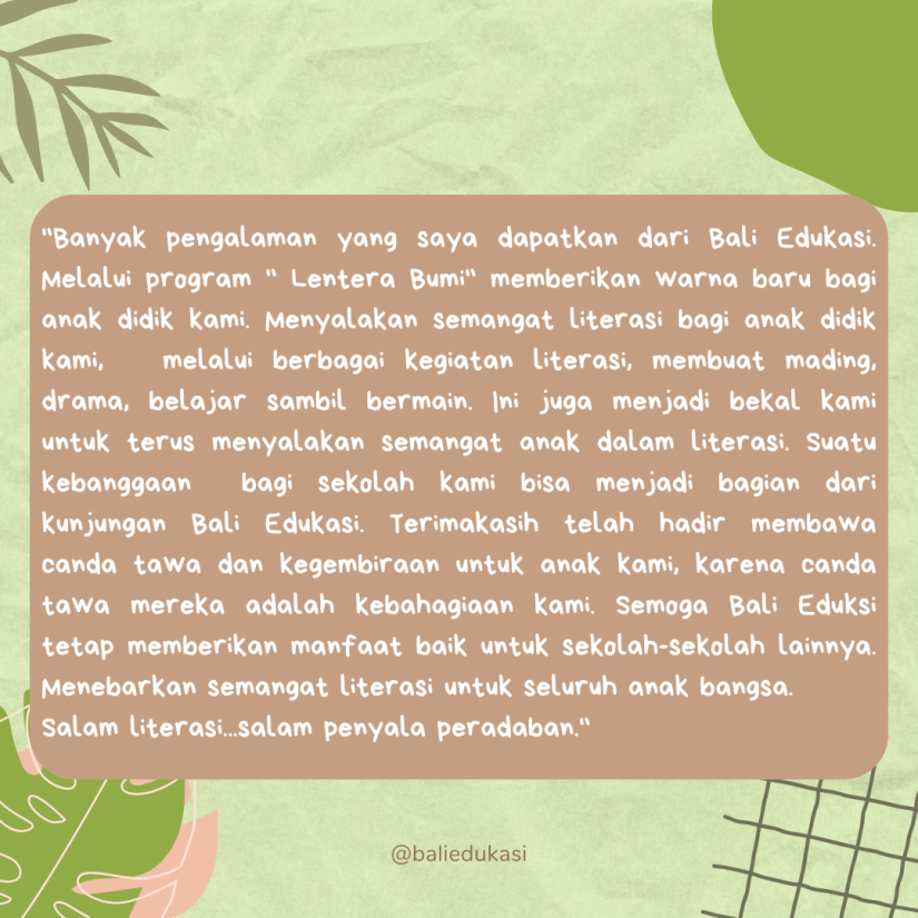 #baliedukasi #LenteraBumi #PenyalaPeradaban #pendidikankarakter #literasi