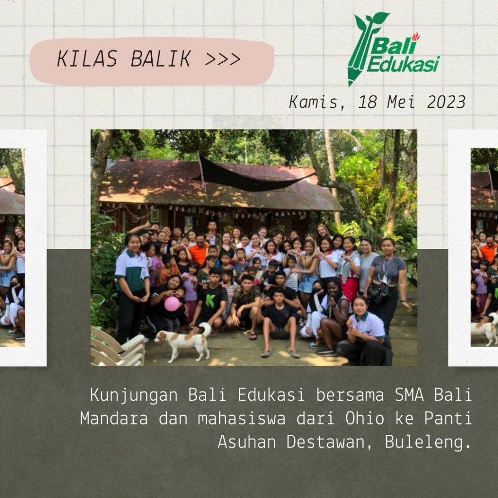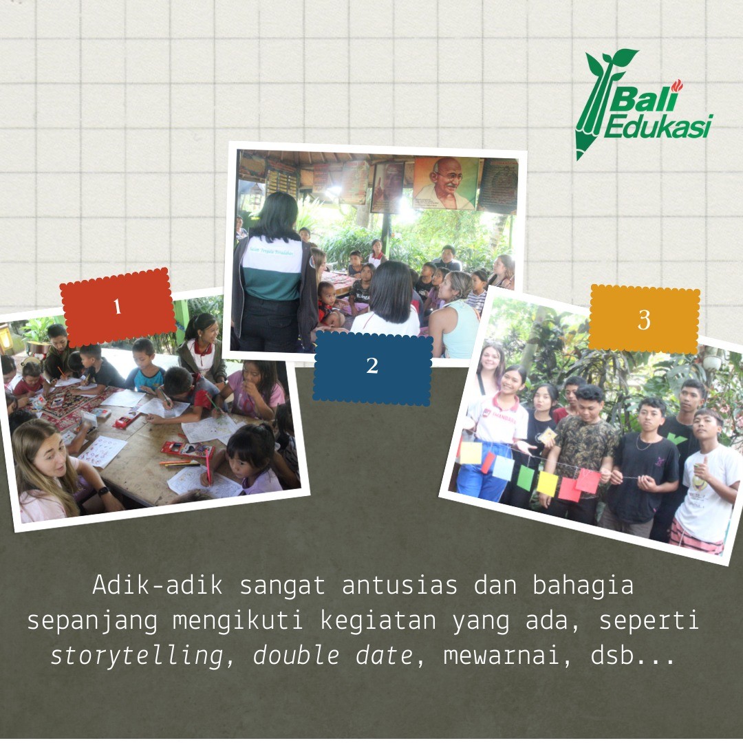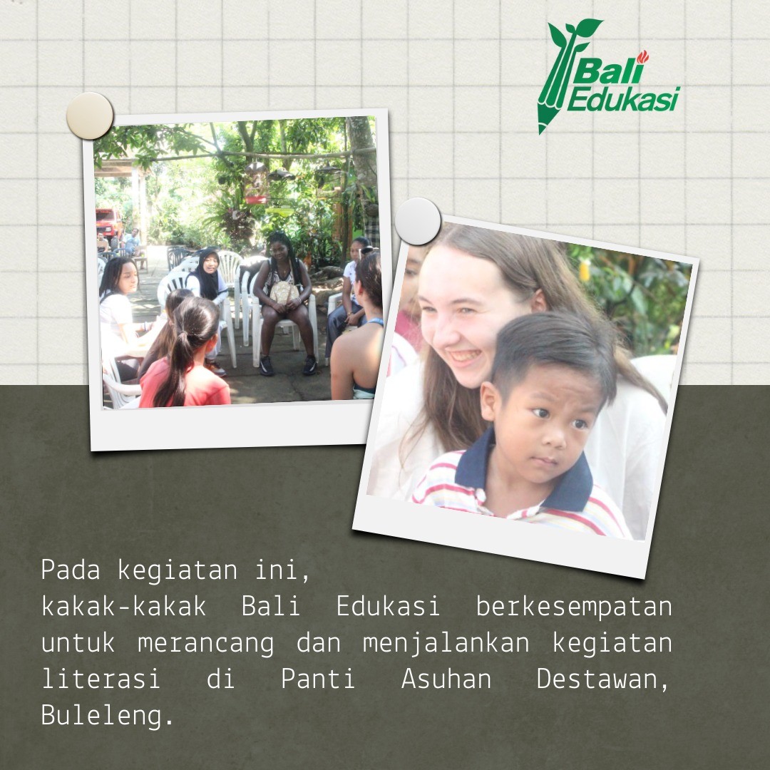 Pada 18 Mei 2023, Bali Edukasi dengan kakak-kakak dari OHIO dan SMAN Bali Mandara mengadakan kunjungan ke Panti Asuhan Destawan loh! Disana kami melakukan kegiatan literasi yang seru. Bukan hanya kegiatannya saja yang seru, adik-adik dari Panti Asuhan Destawan juga sangat seru dan luar biasa! Mereka sangat antusias untuk saling berbagi. Penasaran gimana keseruannya? Yuk ikuti kilas balik di slide berikut yaa!![]()