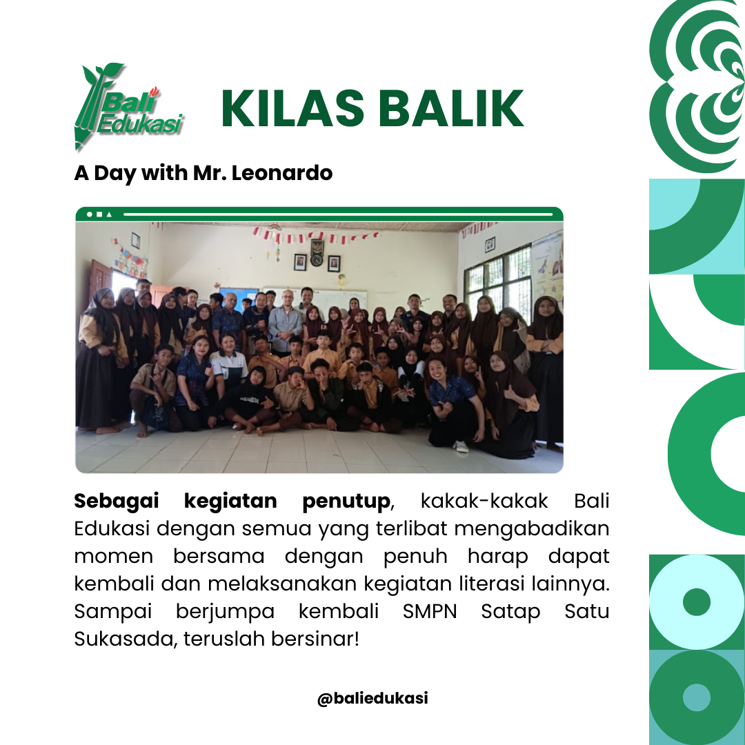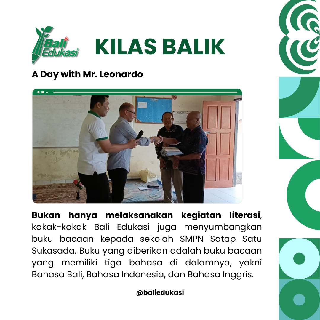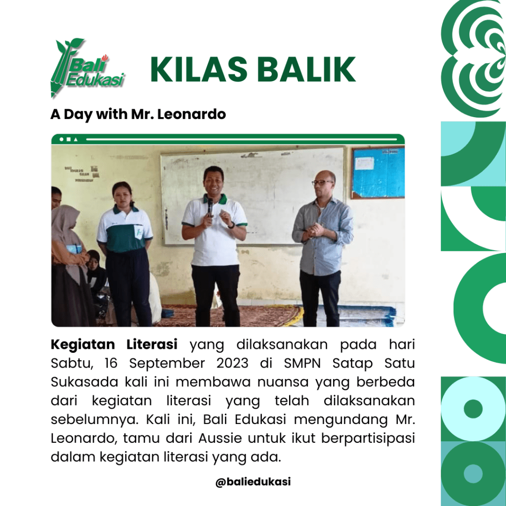 Pada Sabtu, 16 September 2023, tim Bali Edukasi bersama dengan Mr. Leonardo melaksanakan kegiatan Literasi di SMPN Satap Satu Sukasada.