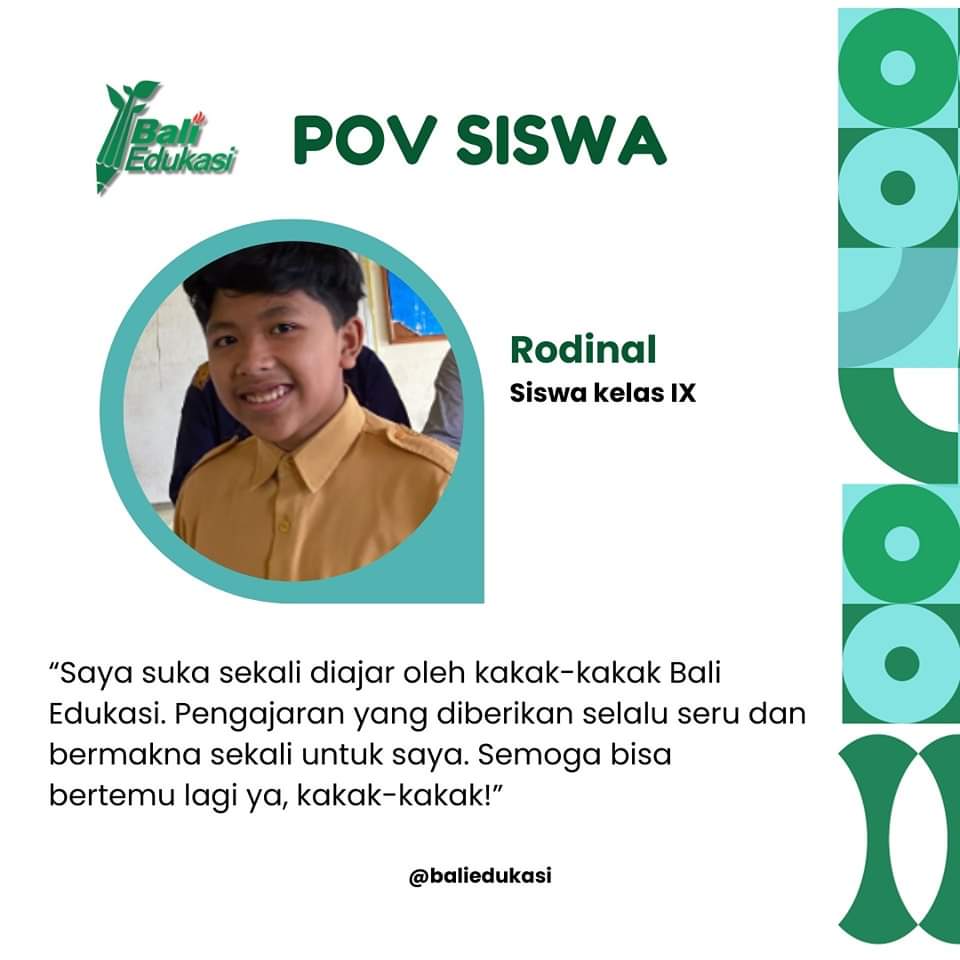 Setelah kilas balik kegiatan literasi di SMPN Satu Atap 1 Sukasada, yuk kita intip pengalaman dari Rodinal, siswa kelas IX SMPN Satu Atap 1 Sukasada✨