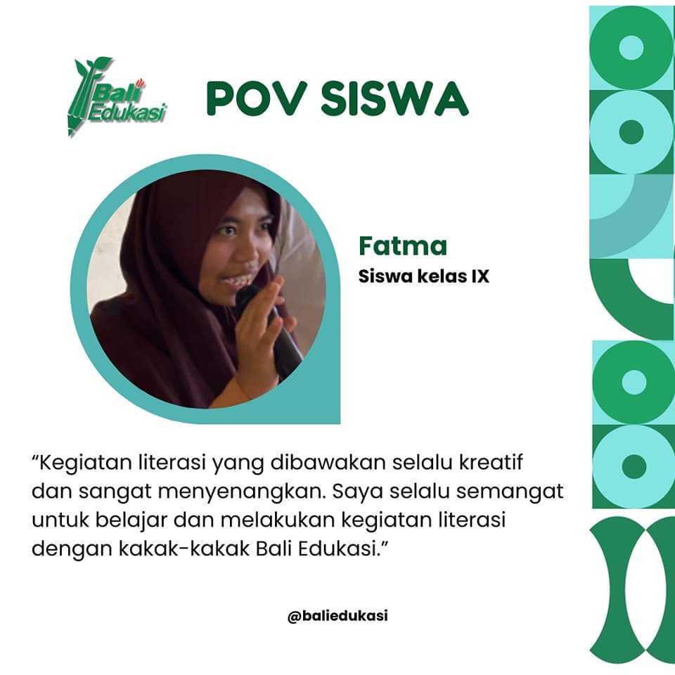 Setelah kilas balik kegiatan literasi di SMPN Satu Atap 1 Sukasada, yuk kita intip pengalaman dari Fatma, siswa kelas IX SMPN Satu Atap 1 Sukasada✨